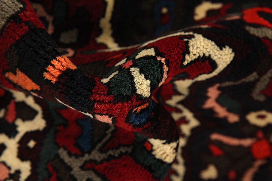Abrash: P.g.a att ullen har olika mängder utav fett och salt, under färgningen suger ullet inte alltid upp samma mängd färg. Innan vävmingen syns inte det tydligt men efter vävningen får raderna olika färgnyanser. Det heter ( Abrash ) – och som på iranska betyder litet moln och visar naturligheten och äktheten i ullen då det inte använts kemiska medel. Exempel
