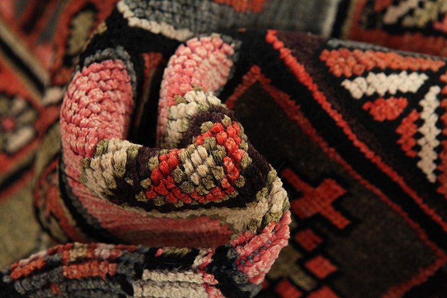 Abrash: P.g.a att ullen har olika mängder utav fett och salt, under färgningen suger ullet inte alltid upp samma mängd färg. Innan vävmingen syns inte det tydligt men efter vävningen får raderna olika färgnyanser. Det heter ( Abrash ) – och som på iranska betyder litet moln och visar naturligheten och äktheten i ullen då det inte använts kemiska medel. Exempel