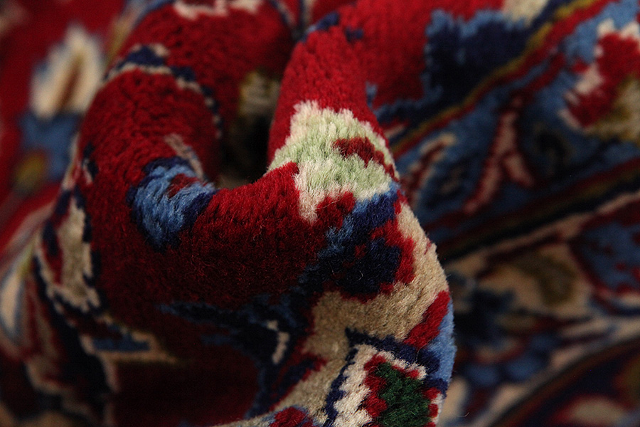 Abrash: P.g.a att ullen har olika mängder utav fett och salt, under färgningen suger ullet inte alltid upp samma mängd färg. Innan vävmingen syns inte det tydligt men efter vävningen får raderna olika färgnyanser. Det heter ( Abrash ) – och som på iranska betyder litet moln och visar naturligheten och äktheten i ullen då det inte använts kemiska medel. Exempel