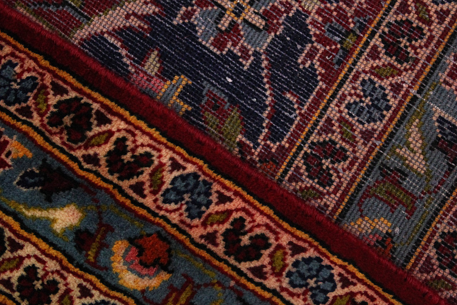 Abrash: P.g.a att ullen har olika mängder utav fett och salt, under färgningen suger ullet inte alltid upp samma mängd färg. Innan vävmingen syns inte det tydligt men efter vävningen får raderna olika färgnyanser. Det heter ( Abrash ) – och som på iranska betyder litet moln och visar naturligheten och äktheten i ullen då det inte använts kemiska medel. Exempel
