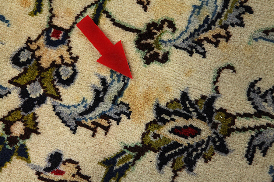 • Viktig anteckning: Färgen i mattan har färgat av sig i en liten del av luggen