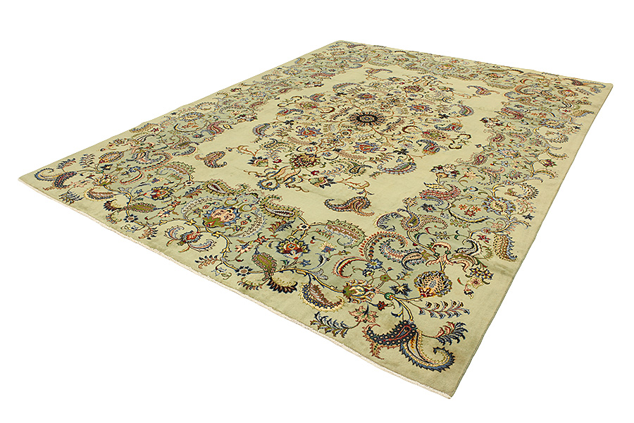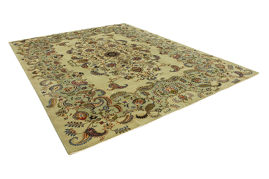 Täbriz mattor: Täbriz är huvudstaden till provinsen Azerbaitzan, i nordvästra Iran. Fram till i slutet av karavan perioden var det den viktigaste handel- mattvävs centrum. Härifrån levererades i västvärlden mästerverk som vävdes av kända och kunnande vävare. Deras höga kvallite gjorde dem mycket kända i hela världshandeln. Det utvecklades många verkstäder med handknutna mattor och där vävdes gamla och nya mönster med hög knuttäthet och med material utav bästa kvallite. Silket och den tunna ullen ger mattorna hög kvallitsklass. Ingen annan stad i Persien producerade så stor mängd och variation utav mattor. Med medaljong eller utan, är deras mönster full med fantasi och är enastående. Föreställningar av blommor och diktstycken utsmyckar mattorna. Färger som dominerar är biege, blå och röd.