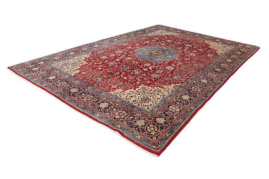 Isfahan mattor: I centrum utav Iran, mittimellan bergen Zagros och öknen ligger staden Isfahan. Idag är det en viktig industristad med en befolkning på 1,2 millioner invånare. Arkitektur mässigt sett är staden ett mästerverk. De stora breda torget Imam med två mosker (Lotfollah och Ali Qapo), parkerna och de gamla broarna som omringas av affärer med miniaturer, mattor, guldaffärer och tehus (tsai chane). Allt detta tillsammans skapar en riktig österländsk atmosfär Den stora bazaren breder ut sig från norra delen utav torget med en sträcka på 5 kilometer mot tsami Jame. En gammal persisk rit från 1600-talet säger att Isfahan är "halva världen". Staden Isfahan under Safabidornas dynastintiden (1502-1629) var huvudstaden i Iran, där Shahen Abbas hade samlat de bästa matt-handverkare. Under den perioden har det vävts överdådliga mattor som idag finns i palatser och på olika museum eller ägda av kända samlare utav mästerverk . De gamla Isfahanmattorna till skillnad med de nyare hade inga medaljonger i centrum. Hela ytan av mattan var full med konstnärligt tillverkad blommor och blommbuketter (palmetter). De nyare Isfahanmattorna kan inte jämföras med de gamla som bara tillverkades till hövligheter. Med den fortsatta traditionen, även dagens Isfahanmattor är mycket tunna i vävnaden och de klipps korta för att bättre framhäva deras mönster. För att framhäva vävnaden ännu bättre så använder dom silke på vissa områden i mönstret, oftast på blommorna. Varpen är utav silke eller utav bomull.