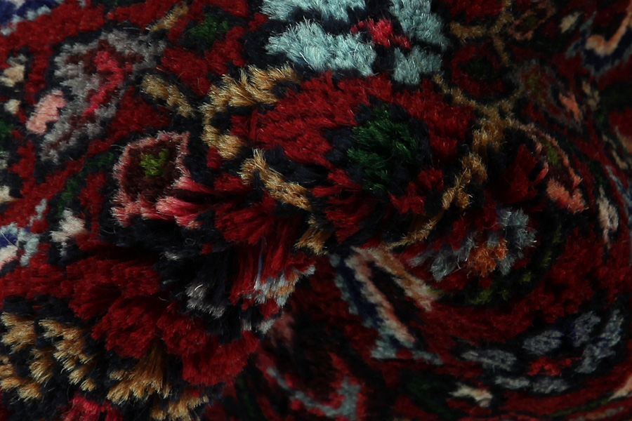 Abrash: P.g.a att ullen har olika mängder utav fett och salt, under färgningen suger ullet inte alltid upp samma mängd färg. Innan vävmingen syns inte det tydligt men efter vävningen får raderna olika färgnyanser. Det heter ( Abrash ) – och som på iranska betyder litet moln och visar naturligheten och äktheten i ullen då det inte använts kemiska medel. Exempel