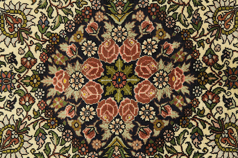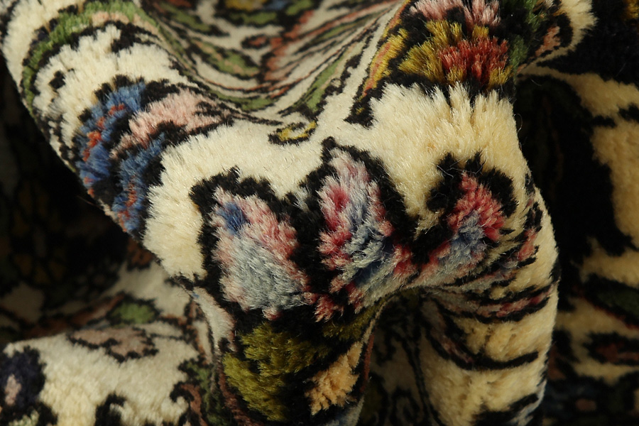 Abrash: P.g.a att ullen har olika mängder utav fett och salt, under färgningen suger ullet inte alltid upp samma mängd färg. Innan vävmingen syns inte det tydligt men efter vävningen får raderna olika färgnyanser. Det heter ( Abrash ) – och som på iranska betyder litet moln och visar naturligheten och äktheten i ullen då det inte använts kemiska medel. Exempel
