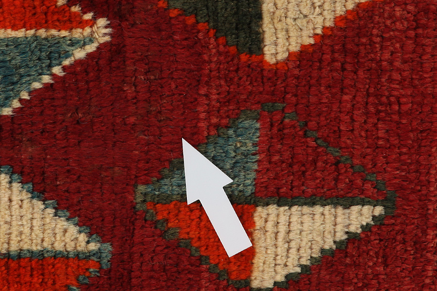 Abrash: P.g.a att ullen har olika mängder utav fett och salt, under färgningen suger ullet inte alltid upp samma mängd färg. Innan vävmingen syns inte det tydligt men efter vävningen får raderna olika färgnyanser. Det heter ( Abrash ) – och som på iranska betyder litet moln och visar naturligheten och äktheten i ullen då det inte använts kemiska medel. Exempel