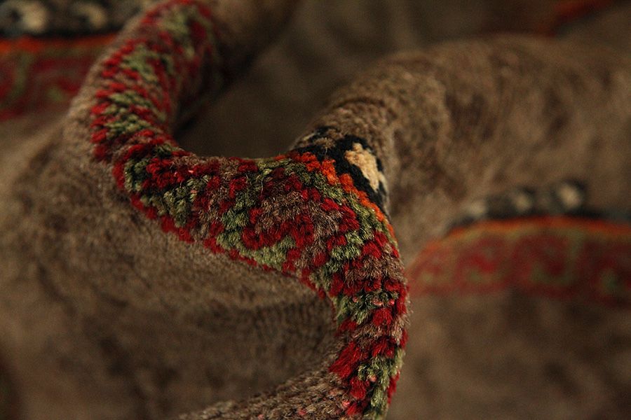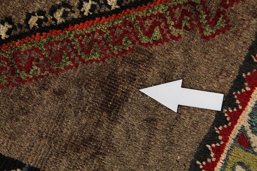 Abrash: P.g.a att ullen har olika mängder utav fett och salt, under färgningen suger ullet inte alltid upp samma mängd färg. Innan vävmingen syns inte det tydligt men efter vävningen får raderna olika färgnyanser. Det heter ( Abrash ) – och som på iranska betyder litet moln och visar naturligheten och äktheten i ullen då det inte använts kemiska medel. Exempel