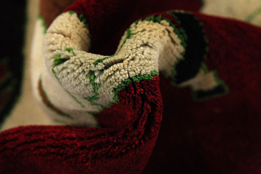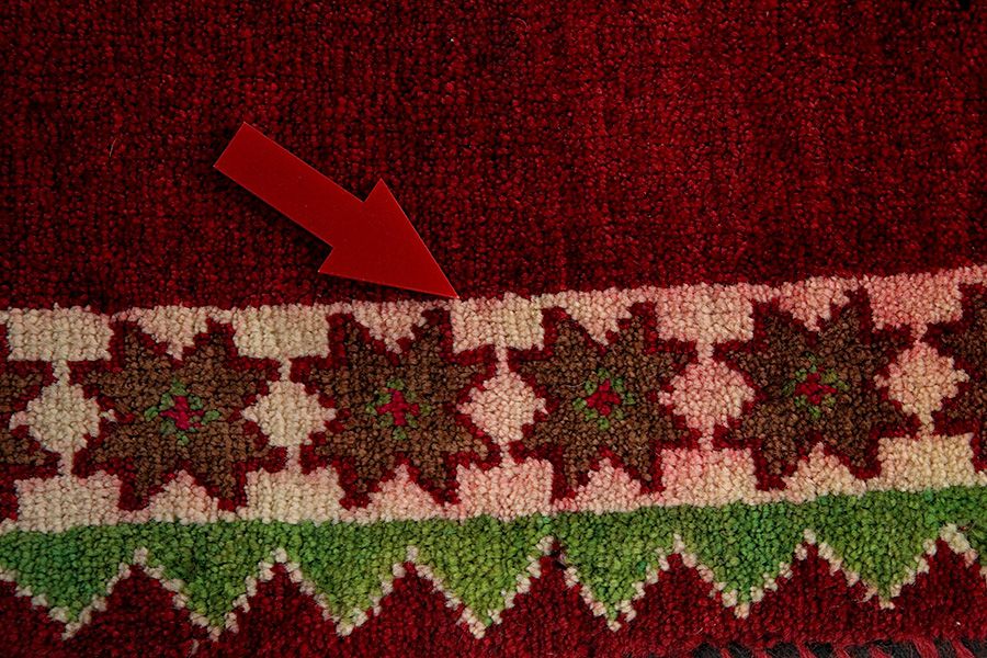 Färgen i mattan har färgat av sig i en liten del av luggen