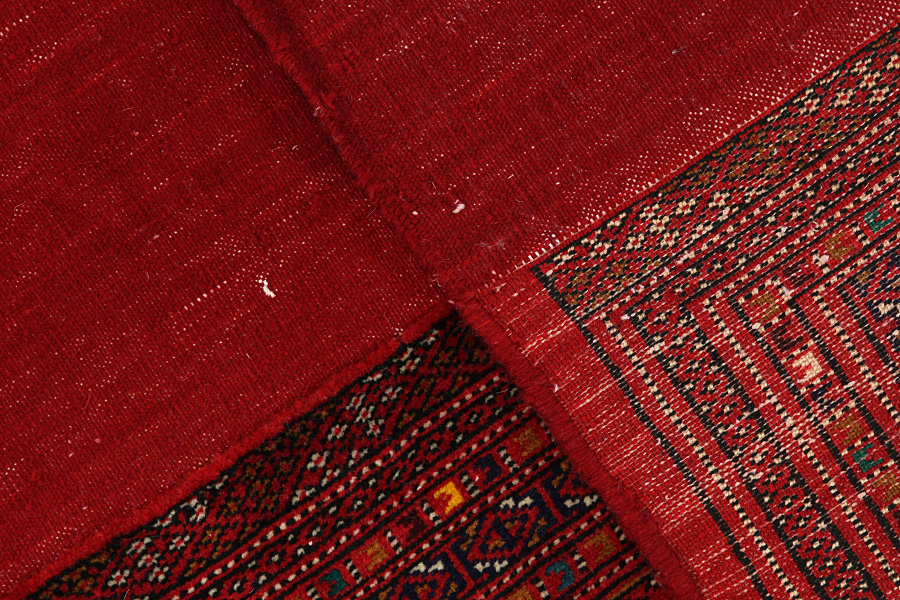 Yomut Carpets: The Yomut carpets are being woven by the turkmenic nomadic tribe Yomut, which live in the regions between Northern Persia, Caspian Sea, Uzbekistan and Afghanistan. The Yomut carpets are woven with a woolen warp. They are dense and meticulously woven from materials of excellent quality. Most of the Yomut carpets have a thin and low pile. Their colours are red, including different tones of red. Their motifs are repeated octagons or rombi surrounded by many bordures, by a main, wide bordure and many narrower bordures on both sides of the main bordure.