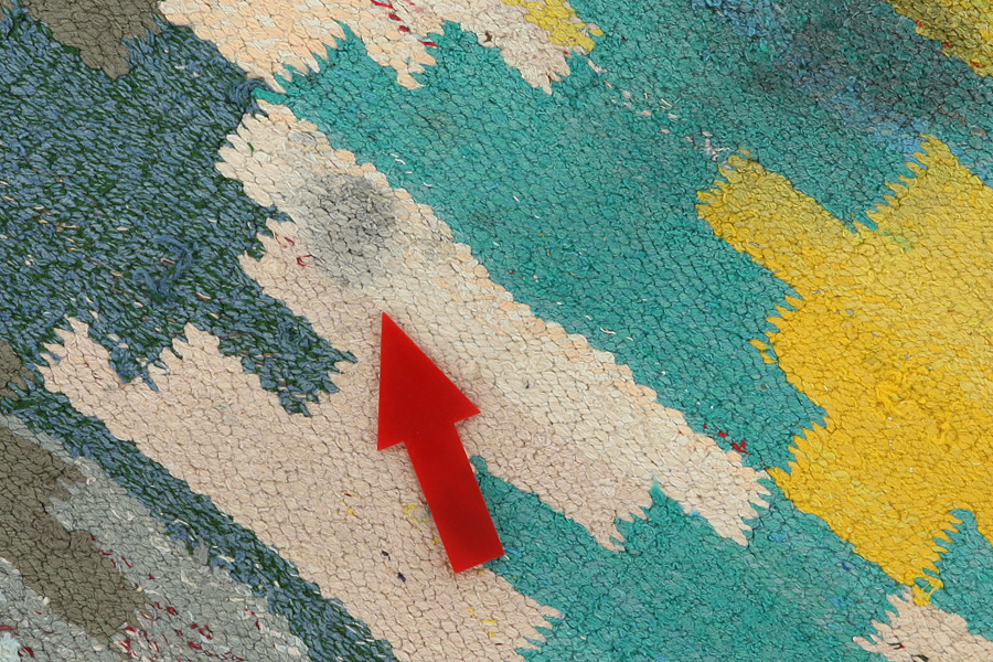 Färgen i mattan har färgat av sig i en liten del av luggen