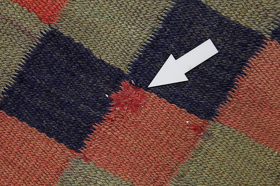 Abrash: P.g.a att ullen har olika mängder utav fett och salt, under färgningen suger ullet inte alltid upp samma mängd färg. Innan vävmingen syns inte det tydligt men efter vävningen får raderna olika färgnyanser. Det heter ( Abrash ) – och som på iranska betyder litet moln och visar naturligheten och äktheten i ullen då det inte använts kemiska medel. Exempel