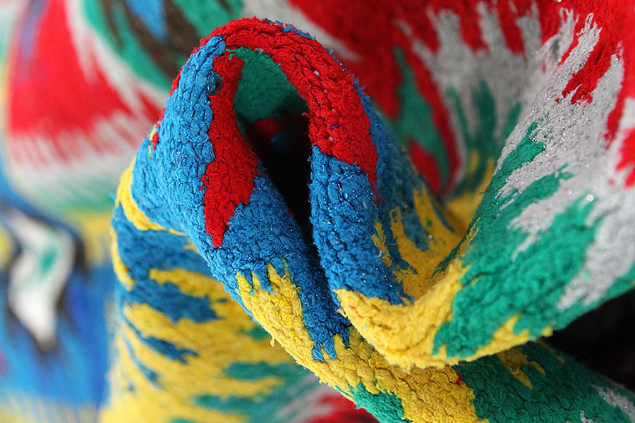 Abrash: P.g.a att ullen har olika mängder utav fett och salt, under färgningen suger ullet inte alltid upp samma mängd färg. Innan vävmingen syns inte det tydligt men efter vävningen får raderna olika färgnyanser. Det heter ( Abrash ) – och som på iranska betyder litet moln och visar naturligheten och äktheten i ullen då det inte använts kemiska medel. Exempel