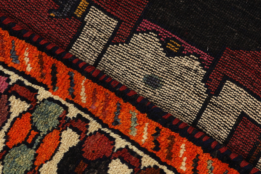 Abrash: P.g.a att ullen har olika mängder utav fett och salt, under färgningen suger ullet inte alltid upp samma mängd färg. Innan vävmingen syns inte det tydligt men efter vävningen får raderna olika färgnyanser. Det heter ( Abrash ) – och som på iranska betyder litet moln och visar naturligheten och äktheten i ullen då det inte använts kemiska medel. Exempel