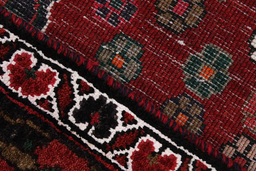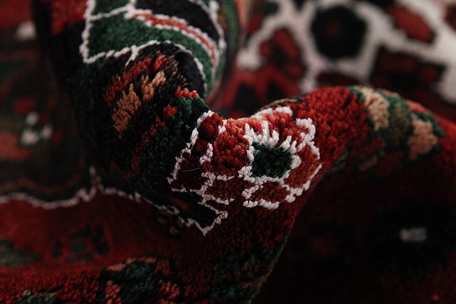 Abrash: P.g.a att ullen har olika mängder utav fett och salt, under färgningen suger ullet inte alltid upp samma mängd färg. Innan vävmingen syns inte det tydligt men efter vävningen får raderna olika färgnyanser. Det heter ( Abrash ) – och som på iranska betyder litet moln och visar naturligheten och äktheten i ullen då det inte använts kemiska medel. Exempel