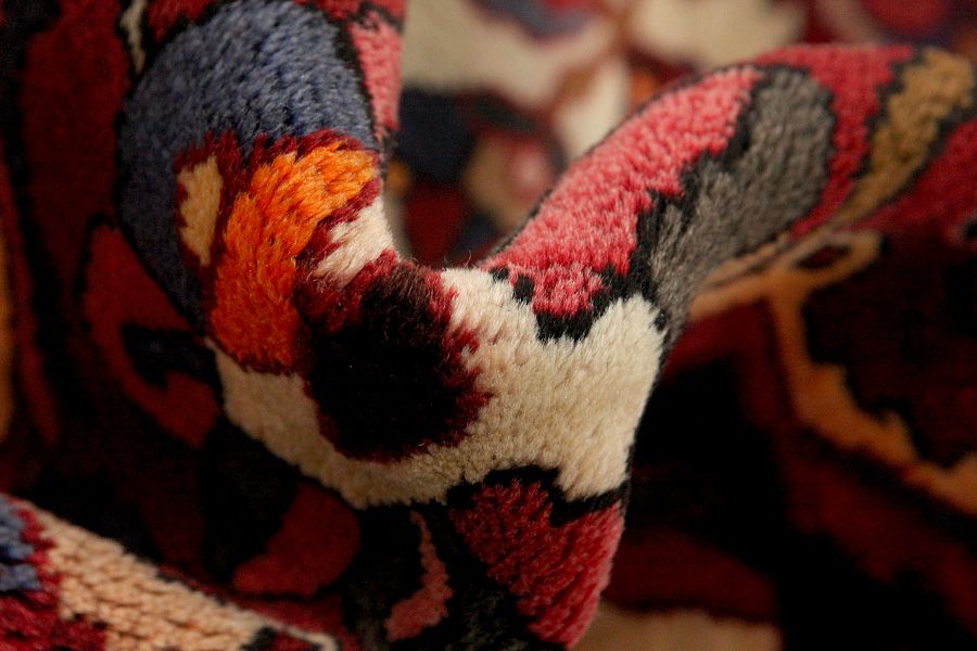 Abrash: P.g.a att ullen har olika mängder utav fett och salt, under färgningen suger ullet inte alltid upp samma mängd färg. Innan vävmingen syns inte det tydligt men efter vävningen får raderna olika färgnyanser. Det heter ( Abrash ) – och som på iranska betyder litet moln och visar naturligheten och äktheten i ullen då det inte använts kemiska medel. Exempel