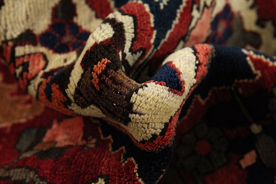 Abrash: P.g.a att ullen har olika mängder utav fett och salt, under färgningen suger ullet inte alltid upp samma mängd färg. Innan vävmingen syns inte det tydligt men efter vävningen får raderna olika färgnyanser. Det heter ( Abrash ) – och som på iranska betyder litet moln och visar naturligheten och äktheten i ullen då det inte använts kemiska medel. Exempel
