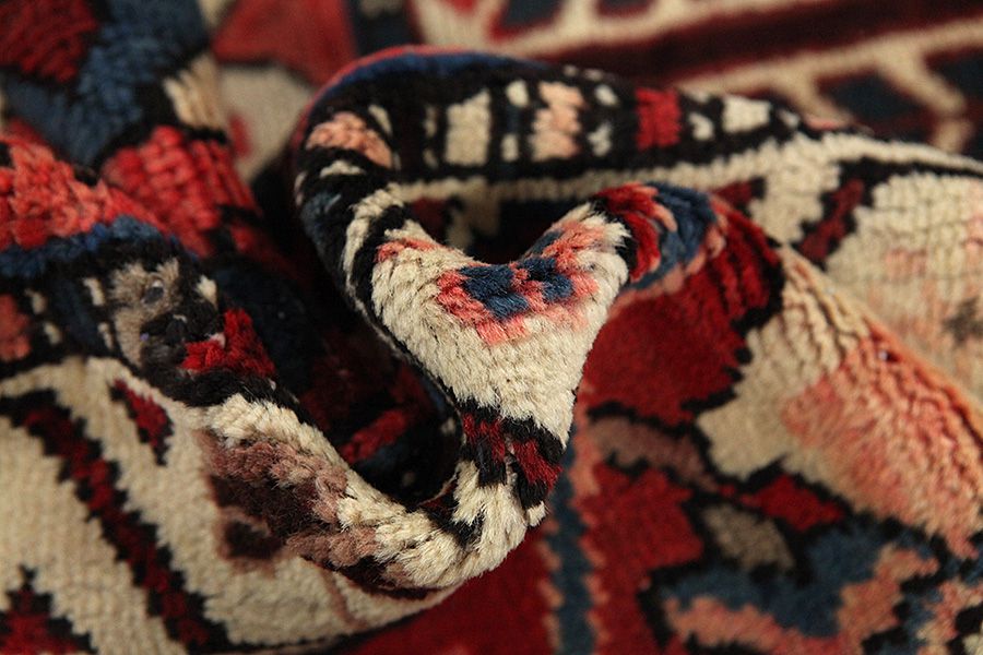 Abrash: P.g.a att ullen har olika mängder utav fett och salt, under färgningen suger ullet inte alltid upp samma mängd färg. Innan vävmingen syns inte det tydligt men efter vävningen får raderna olika färgnyanser. Det heter ( Abrash ) – och som på iranska betyder litet moln och visar naturligheten och äktheten i ullen då det inte använts kemiska medel. Exempel