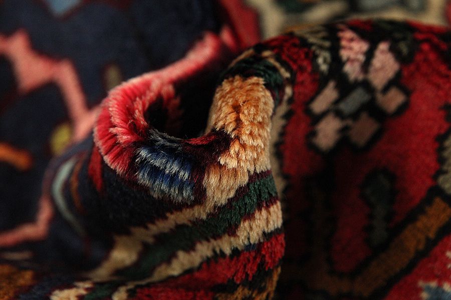 Abrash: P.g.a att ullen har olika mängder utav fett och salt, under färgningen suger ullet inte alltid upp samma mängd färg. Innan vävmingen syns inte det tydligt men efter vävningen får raderna olika färgnyanser. Det heter ( Abrash ) – och som på iranska betyder litet moln och visar naturligheten och äktheten i ullen då det inte använts kemiska medel. Exempel