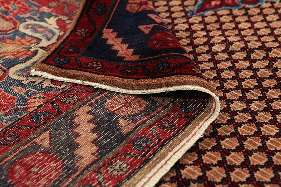 Abrash: P.g.a att ullen har olika mängder utav fett och salt, under färgningen suger ullet inte alltid upp samma mängd färg. Innan vävmingen syns inte det tydligt men efter vävningen får raderna olika färgnyanser. Det heter ( Abrash ) – och som på iranska betyder litet moln och visar naturligheten och äktheten i ullen då det inte använts kemiska medel. Exempel