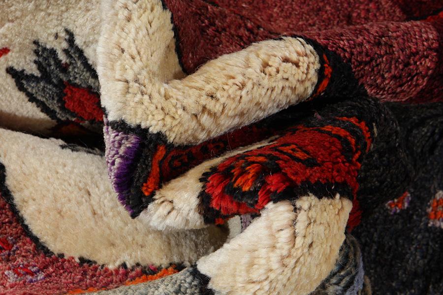 Abrash: P.g.a att ullen har olika mängder utav fett och salt, under färgningen suger ullet inte alltid upp samma mängd färg. Innan vävmingen syns inte det tydligt men efter vävningen får raderna olika färgnyanser. Det heter ( Abrash ) – och som på iranska betyder litet moln och visar naturligheten och äktheten i ullen då det inte använts kemiska medel. Exempel