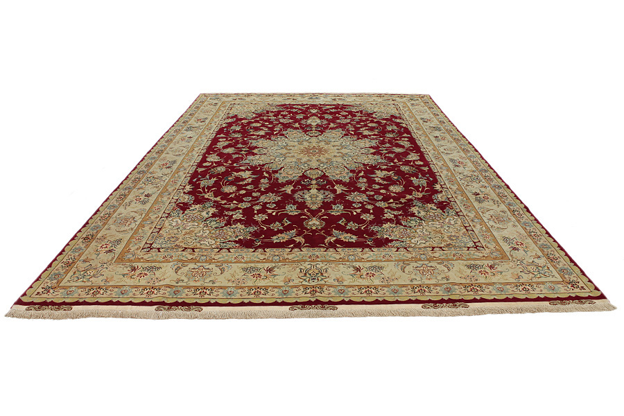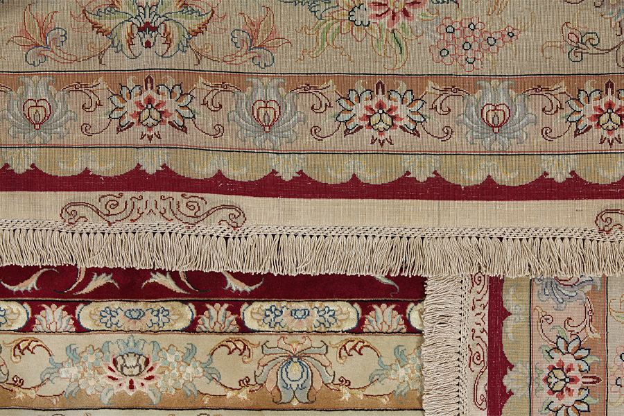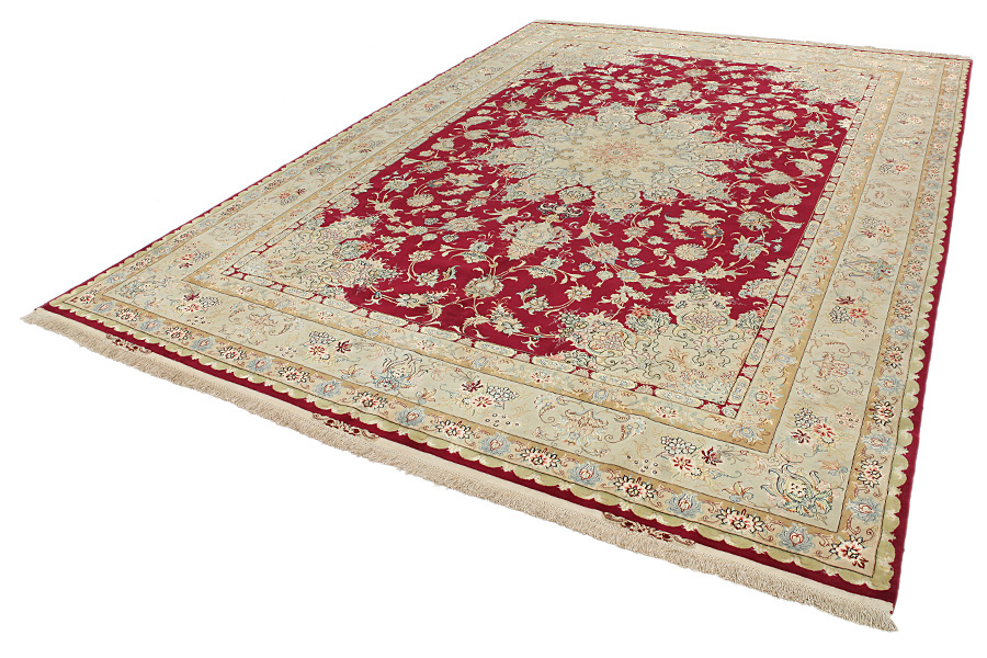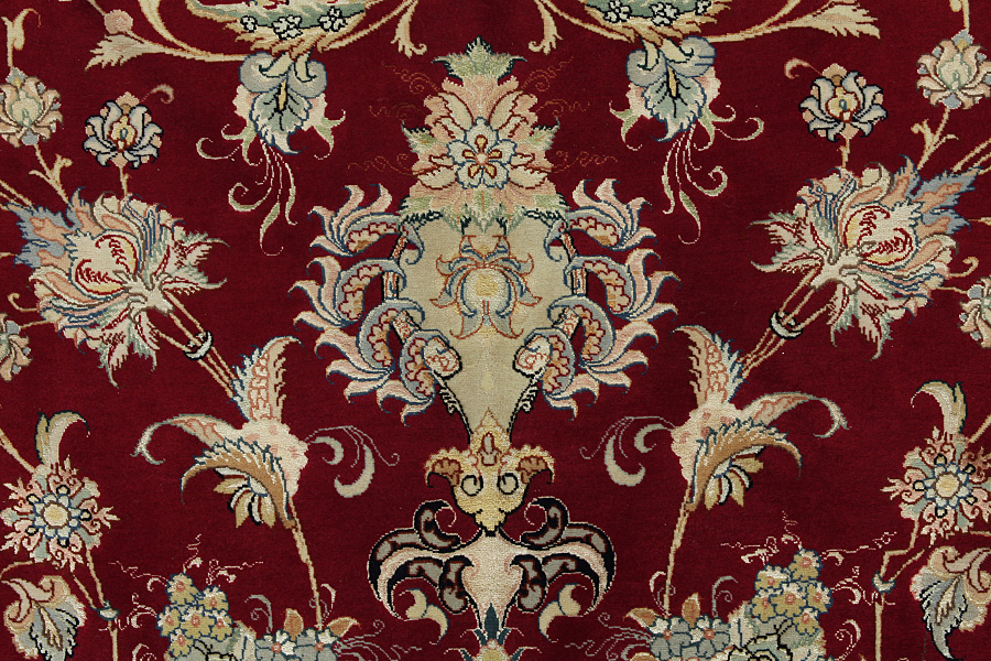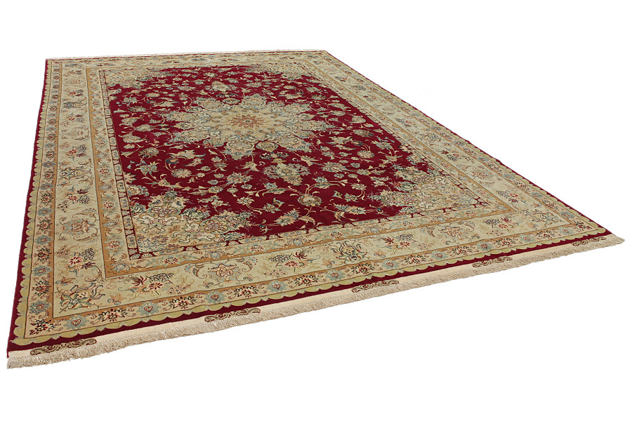 Täbriz mattor: Täbriz är huvudstaden till provinsen Azerbaitzan, i nordvästra Iran. Fram till i slutet av karavan perioden var det den viktigaste handel- mattvävs centrum. Härifrån levererades i västvärlden mästerverk som vävdes av kända och kunnande vävare. Deras höga kvallite gjorde dem mycket kända i hela världshandeln. Det utvecklades många verkstäder med handknutna mattor och där vävdes gamla och nya mönster med hög knuttäthet och med material utav bästa kvallite. Silket och den tunna ullen ger mattorna hög kvallitsklass. Ingen annan stad i Persien producerade så stor mängd och variation utav mattor. Med medaljong eller utan, är deras mönster full med fantasi och är enastående. Föreställningar av blommor och diktstycken utsmyckar mattorna. Färger som dominerar är biege, blå och röd.