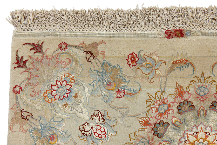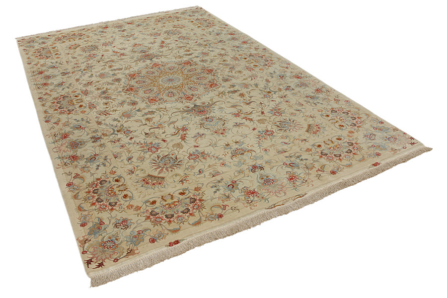 Täbriz mattor: Täbriz är huvudstaden till provinsen Azerbaitzan, i nordvästra Iran. Fram till i slutet av karavan perioden var det den viktigaste handel- mattvävs centrum. Härifrån levererades i västvärlden mästerverk som vävdes av kända och kunnande vävare. Deras höga kvallite gjorde dem mycket kända i hela världshandeln. Det utvecklades många verkstäder med handknutna mattor och där vävdes gamla och nya mönster med hög knuttäthet och med material utav bästa kvallite. Silket och den tunna ullen ger mattorna hög kvallitsklass. Ingen annan stad i Persien producerade så stor mängd och variation utav mattor. Med medaljong eller utan, är deras mönster full med fantasi och är enastående. Föreställningar av blommor och diktstycken utsmyckar mattorna. Färger som dominerar är biege, blå och röd.