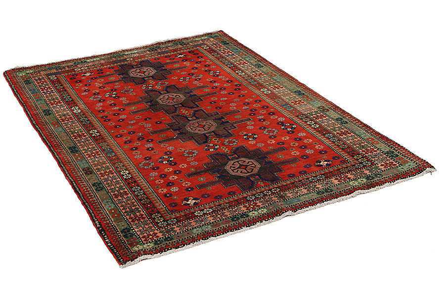 Caucasian Carpets: The Caucasian carpets are being woven in the regions on the mountains between the Black and the Caspian Sea. In these regions live many different tribes with different languages, such as Persians, Turkmens, Turks and Armenians. Despite the different tribes in Caucasus, the carpets that they weave have many things in common as far as the weaving, their motifs and their materials are concerned. The difficult accessibility of some regions in Caucasus has influenced the fabricants of handmade carpets so that they still use the traditional motifs without any exterior influences. Main colours of the carpets are red, blue, yellow, green and ecru. Their motifs are geometrical. Stars, squares and cross are some of their main motifs. Sometimes they weave human or animal geometrical figures and flowers in geometrical designs.