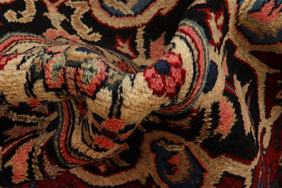Abrash: P.g.a att ullen har olika mängder utav fett och salt, under färgningen suger ullet inte alltid upp samma mängd färg. Innan vävmingen syns inte det tydligt men efter vävningen får raderna olika färgnyanser. Det heter ( Abrash ) – och som på iranska betyder litet moln och visar naturligheten och äktheten i ullen då det inte använts kemiska medel. Exempel