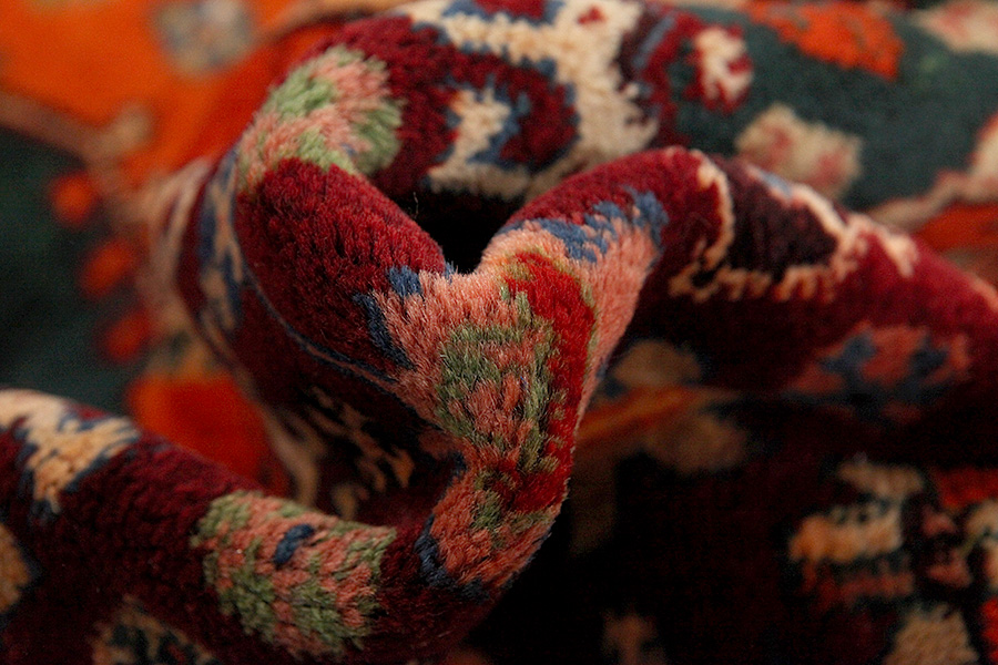 Abrash: P.g.a att ullen har olika mängder utav fett och salt, under färgningen suger ullet inte alltid upp samma mängd färg. Innan vävmingen syns inte det tydligt men efter vävningen får raderna olika färgnyanser. Det heter ( Abrash ) – och som på iranska betyder litet moln och visar naturligheten och äktheten i ullen då det inte använts kemiska medel. Exempel