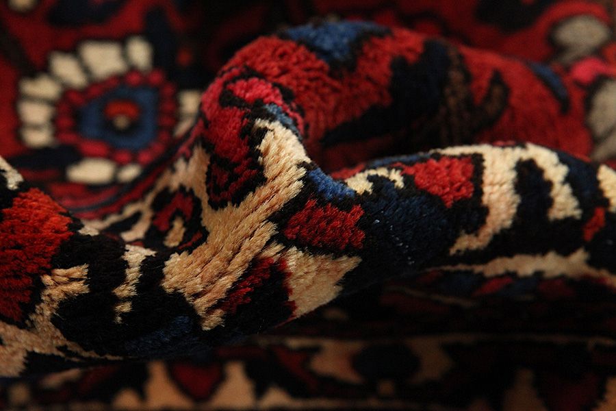 Abrash: P.g.a att ullen har olika mängder utav fett och salt, under färgningen suger ullet inte alltid upp samma mängd färg. Innan vävmingen syns inte det tydligt men efter vävningen får raderna olika färgnyanser. Det heter ( Abrash ) – och som på iranska betyder litet moln och visar naturligheten och äktheten i ullen då det inte använts kemiska medel. Exempel